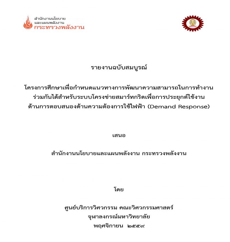 โครงการศึกษาเพื่อกำหนดแนวทางการพัฒนาความสามารถในการทำงานร่วมกันได้สำหรับระบบโครงข่ายสมาร์ทกริดเพื่อการประยุกต์ใช้งาน ด้านการตอบสนองด้านความต้องการใช้ไฟฟ้า (Demand Response)