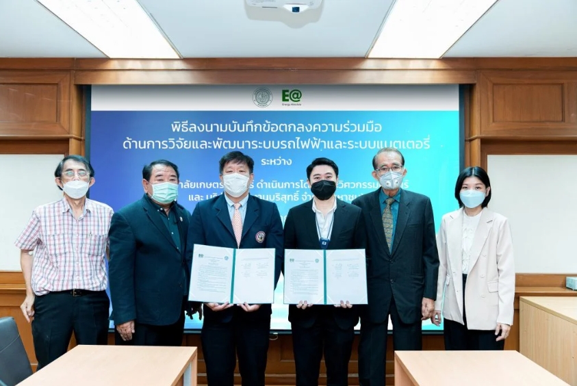 3 EA เซ็น MOU วิศวะเกษตรฯ ร่วมมือวิจัยพัฒนาระบบรถไฟฟ้า-ระบบแบตเตอรี่ 5 นายอมร ทรัพย์ทวีกุล รองประธานเจ้าหน้าที่บริหาร บมจ.พลังงานบริสุทธิ์ (EA) เปิดเผยว่า บริษัทลงนามบันทึกความร่วมมือด้านการวิจัยและพัฒนาระบบรถไฟฟ้าและระบบแบตเตอรี่ กับ มหาวิทยาลัยเกษตรศาสตร์ ดำเนินการโดย คณะวิศวกรรมศาสตร์ในโครงการวิจัยและพัฒนาระบบรถไฟฟ้าและระบบแบตเตอรี่ ซึ่งเป็นร่วมมือในการวิจัยพัฒนานวัตกรรมและขบวนการผลิต รถยนต์ไฟฟ้า รถบัสไฟฟ้า รถบรรทุกไฟฟ้า และยานยนต์ไฟฟ้าอื่น ๆ รวมถึงระบบแบตเตอรี่และระบบที่เกี่ยวข้อง คลิ๊ก