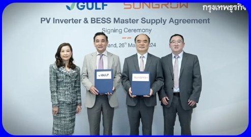 | 1 | ‘กัลฟ์’ จับมือ ‘ซันโกรว์’ จัดหาระบบกักเก็บพลังงาน - อินเวอร์เตอร์ หนุนพลังงานสะอาด | 4 | บริษัท กัลฟ์ เอ็นเนอร์จี ดีเวลลอปเมนท์ จำกัด (มหาชน) จับมือ บริษัท ซันโกรว์ พาวเวอร์ ซัพพลาย จำกัด ลงนามในสัญญาจัดหาระบบกักเก็บพลังงานด้วยแบตเตอรี่ และอินเวอร์เตอร์พลังงานแสงอาทิตย์ เพื่อจัดหาระบบกักเก็บพลังงานด้วยแบตเตอรี่และระบบอินเวอร์เตอร์พลังงานแสงอาทิตย์ ให้กับโรงไฟฟ้าพลังงานแสงอาทิตย์แบบติดตั้งบนพื้นดิน (Solar Farms) โรงไฟฟ้าพลังงานแสงอาทิตย์แบบติดตั้งบนพื้นดินร่วมกับระบบกักเก็บพลังงาน (Solar Farms with Battery Energy Storage Systems) และโรงไฟฟ้าพลังงานแสงอาทิตย์แบบติดตั้งบนหลังคา (Solar Rooftops) โดยมีแผนทยอยเปิดดำเนินการเชิงพาณิชย์ระหว่างปี 2567 - 2573 |
