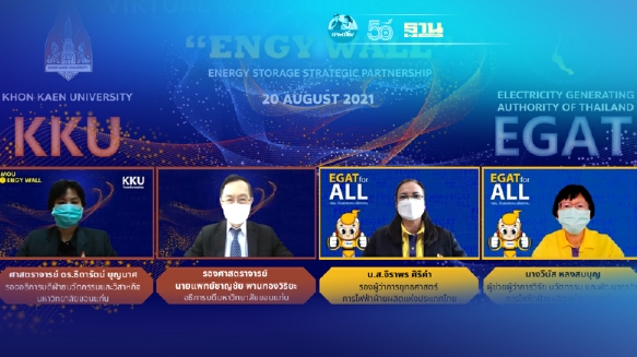 2 | กฟผ. ผนึก มข. พัฒนา Engywall แบตเตอรี่บ้านพลังสูงต้นแบบสู่เชิงพาณิชย์ | 4 | การไฟฟ้าฝ่ายผลิตแห่งประเทศไทย (กฟผ.) ได้ดำเนินการร่วมมือทางวิชาการโครงการวิจัย และพัฒนา “Engywall” กับมหาวิทยาลัยขอนแก่น (มข.) เพื่อใช้ประโยชน์เชิงพาณิชย์ โดยจะมีกรอบระยะเวลา 3 ปี ซึ่งจะดำเนินการนำแบตเตอรี่ที่พัฒนา และผลิตโดย มข. มาพัฒนาต่อเป็นระบบกักเก็บพลังงาน หรือ Battery Energy Storage System (BESS) โดยจะเรียกว่า Engywall ซึ่งเป็น BESS สำหรับใช้ในบ้าน และเพื่อให้ชุมชนนำไปใช้ให้เกิดการพึ่งพาตนเองได้อย่างมั่นคงยั่งยืน |