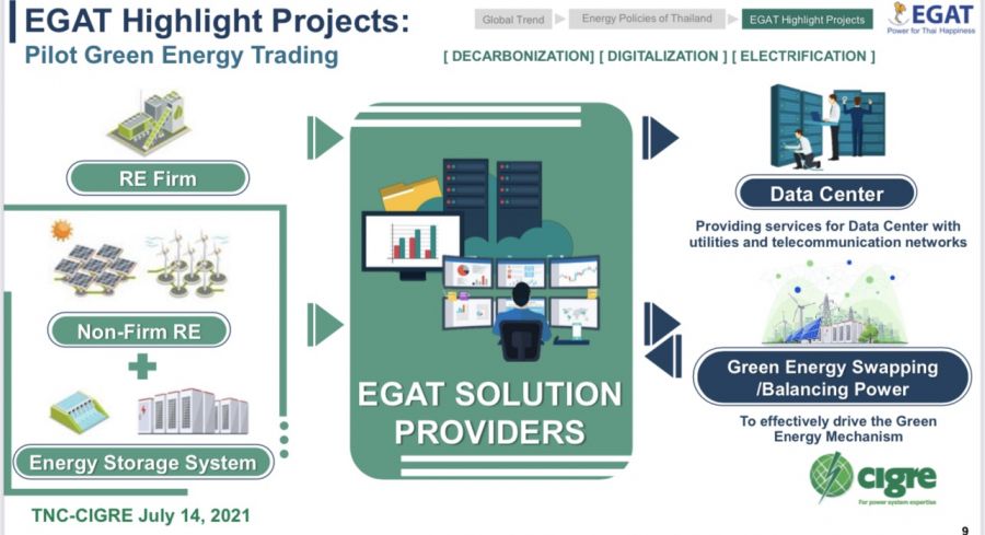 21 | กฟผ. ดึง Peer-to-Peer Energy Trading เชื่อมระบบซื้อ-ขายไฟเสรีครั้งแรกในไทย | 3 | การไฟฟ้าฝ่ายผลิตแห่งประเทศไทย (กฟผ.) ได้นำแพลตฟอร์ม Peer-to-Peer Energy Trading เพื่อเชื่อมระบบการซื้อขายแลกเปลี่ยนพลังงานไฟฟ้าในโครงการ SolarPlus ระหว่างผู้ผลิตและผู้บริโภคที่ติดตั้งโซลาร์รูฟท็อปด้วยกันเองเป็นครั้งแรกในไทย เพื่อร่วมส่งเสริมการใช้พลังงานสะอาดในภาคที่อยู่อาศัย โดยคาดว่าจะสามารถช่วยลดการปล่อย “ก๊าซเรือนกระจก” ลงได้ 2.3 ล้านตันคาร์บอนไดออกไซด์เทียบเท่าต่อปี และเป็นศูนย์กลางในการซื้อขายพลังงานไฟฟ้าจากพลังงานสีเขียว |