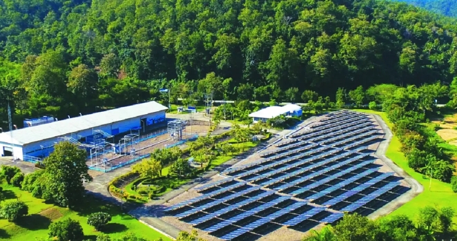 3 | กฟผ. ใช้ซอฟต์แวร์โซลูชันของ ซีเมนส์ “โครงการ โซลาร์เซลล์ลอยน้ำไฮบริดขนาดใหญ่ที่สุด ในโลก” | 6 | กฟผ. นำร่องโครงการโรงไฟฟ้าโซลาร์เซลล์ลอยน้ำไฮบริดเขื่อนสิรินธร จังหวัดอุบลราชธานี เป็นแห่งแรกในประเทศไทย โดยใช้เทคโนโลยีอัจฉริยะ นำระบบ SICAM Microgrid Control และ Photovoltaic Plant Control ของซีเมนส์มาใช้ควบคุมการจ่ายพลังงานไฟฟ้าที่สามารถผลิตกระแสไฟฟ้าจากแหล่งพลังงานหมุนเวียนได้ทั้งกลางวัน และกลางคืน โดยมีกำลังผลิตไฟฟ้าจากแสงอาทิตย์ขนาด 45 เมกะวัตต์ และกำลังผลิตไฟฟ้าจากพลังน้ำขนาด 36 เมกะวัตต์ ล่าสุดได้ดำเนินการจ่ายกระแสไฟฟ้าเชิงพาณิชย์แล้ว |
