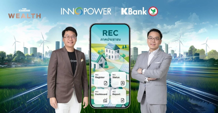 | 2 | ก้าวต่อไปของไทยสู่ Net Zero กับแพลตฟอร์มการขึ้นทะเบียนและขายใบรับรองการผลิตพลังงานหมุนเวียนครั้งแรกในไทย | 3 | ธนาคารกสิกรไทย ร่วมกับ บริษัท อินโนพาวเวอร์ จำกัด เตรียมเปิดตัวแพลตฟอร์มสนับสนุนการขึ้นทะเบียนและขายใบรับรองการผลิตพลังงานหมุนเวียน สำหรับองค์กรและประชาชนรายย่อยครั้งแรกในประเทศไทย โดยแพลตฟอร์มจะเปิดให้บริการในไตรมาส 2/67 ซึ่งจะช่วยให้ลูกค้ารายย่อยที่ติดตั้งโซลาร์รูฟท็อปสามารถขอและขายใบรับรอง REC ได้ง่ายขึ้น ถือเป็นการสร้างรายได้เพิ่มให้กับผู้ผลิตไฟฟ้ารายย่อยและส่งเสริมให้เกิดการผลิตและการใช้ไฟฟ้าจากพลังงานหมุนเวียนอย่างยั่งยืนในประเทศ |