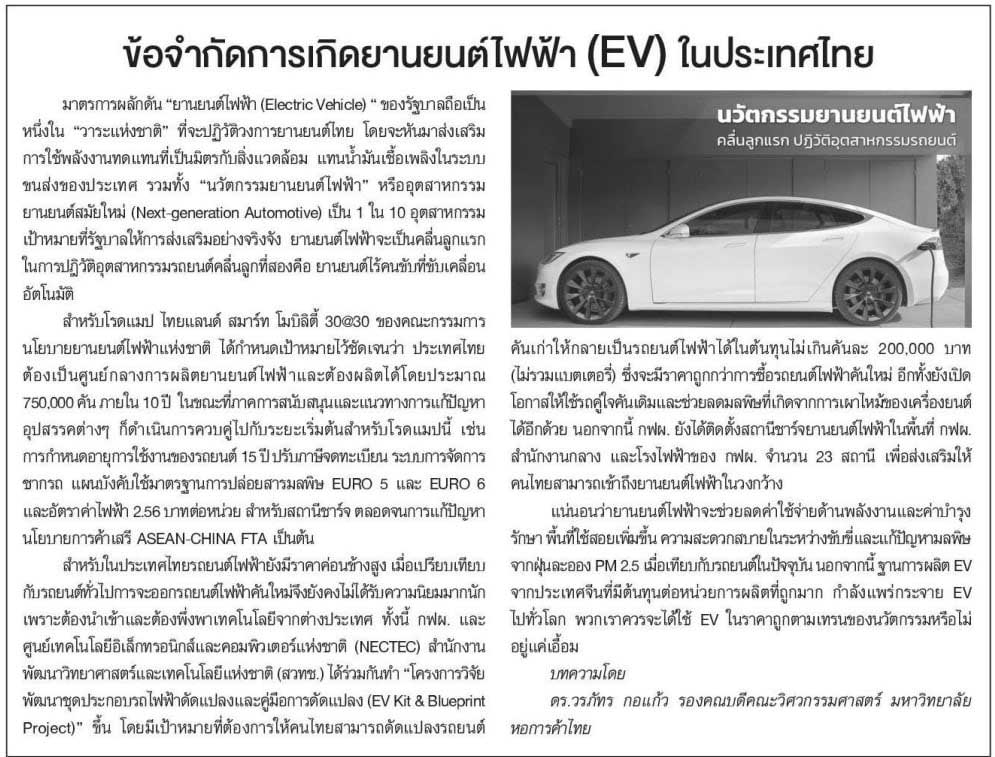 ///ข้อจำกัดการเกิดยานยนต์ไฟฟ้า (EV) ในประเทศไทย