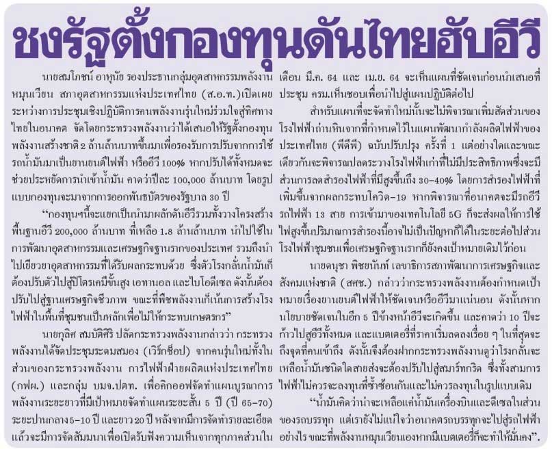 นายสมโภชน์ อาหุนัย รองประธานกลุ่มอุตสาหกรรมพลังงานหมุนเวียน สภาอุตสาหกรรมแห่งประเทศไทย (ส.อ.ท.) เปิดเผยระหว่างการประชุมเชิงปฏิบัติการคนพลังงานรุ่นใหม่ร่วมใจสู่ทิศทางไทยในอนาคต